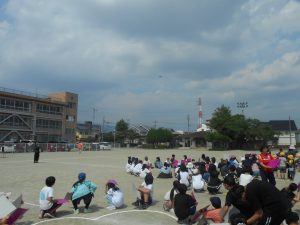 まず教頭先生の放送で学年ごと校庭に出ました。